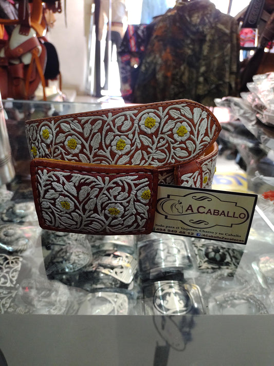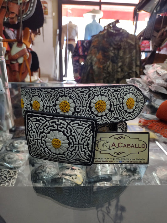 Cinto Piteado Guias Flores Abultadas Amarrillas