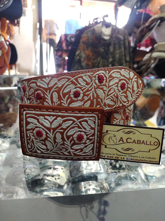 Cinto Piteado Hoja de Parra Flores Abultadas Rojas