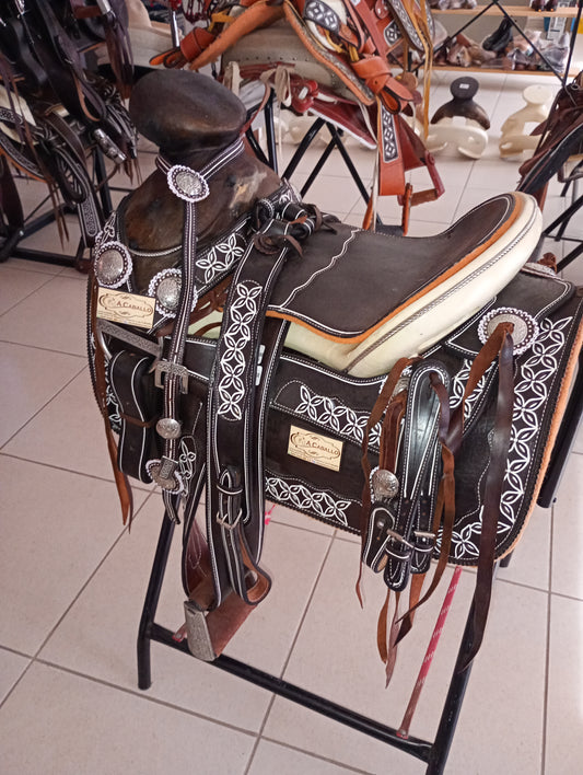 Montura Esqueleto, Negra, Vaqueta Latigo, Herr. Aluminio.