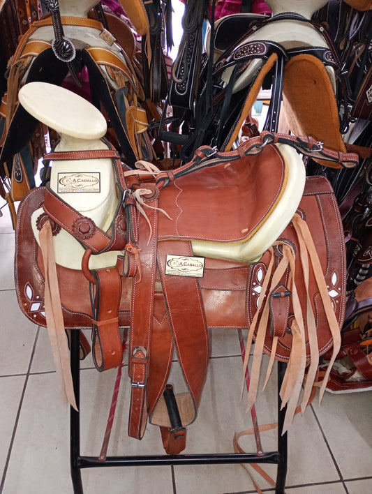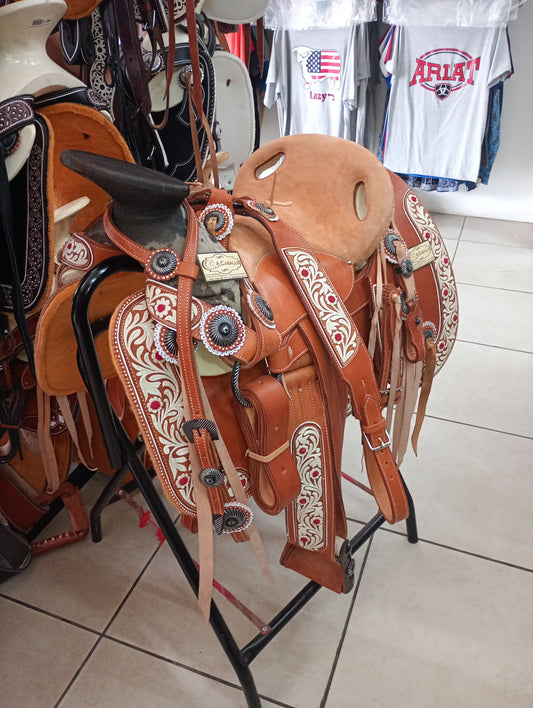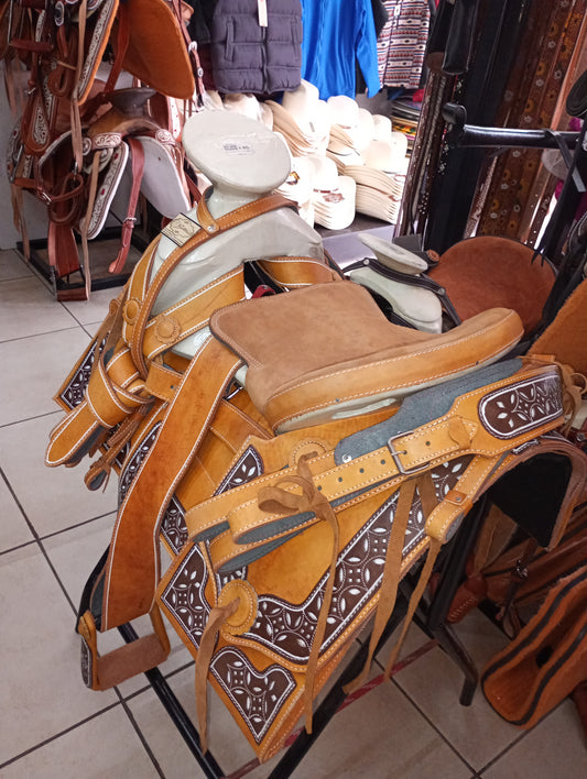 Montura Piteada Miel, Cantina, Surron, Herraje Pavonado Acero.