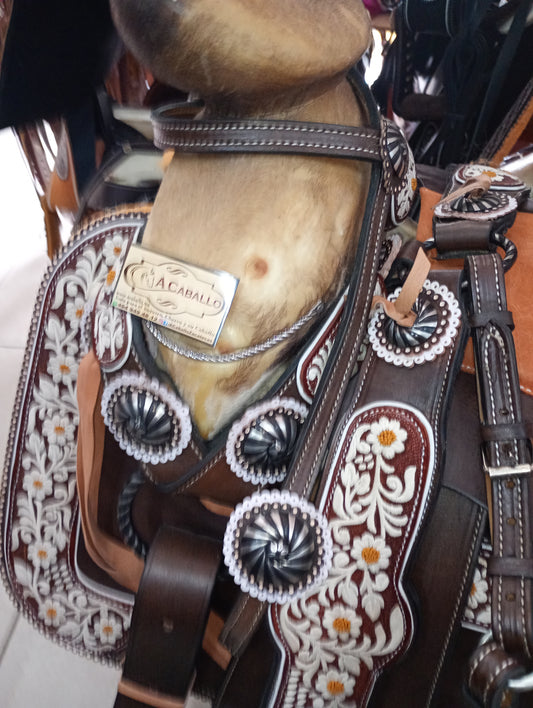 Montura Piteada Cafe Chocolate, Cantinas, Surron y Herraje Pavonado.