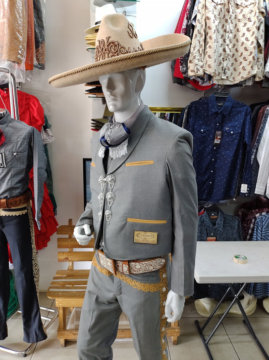 Traje Charro 3 Piezas Media Gala, Botonadura de Gala, Color Gris Claro