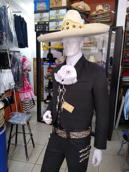 Traje Charro 3 Piezas Media Gala y Bordado en Hilo Metalico