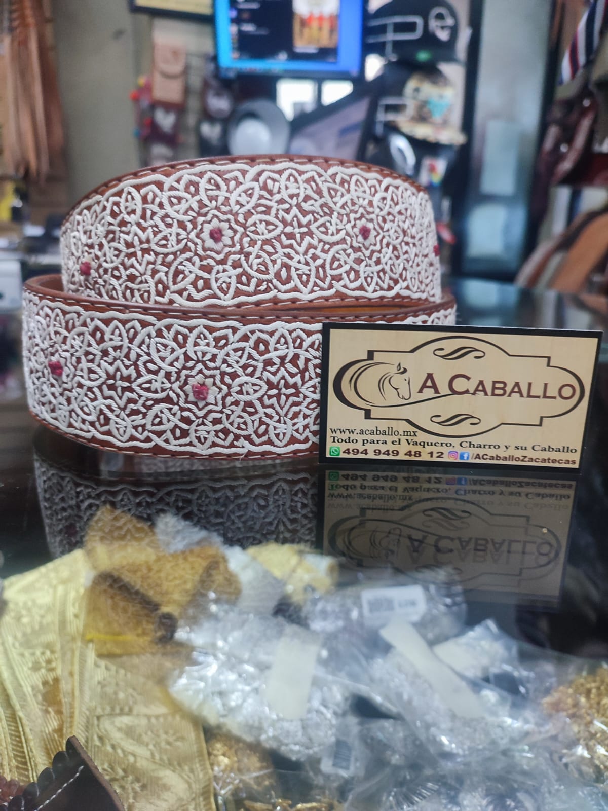 Cinto Piteado Extra Fino, Estrella con Flores y Churro en rojo